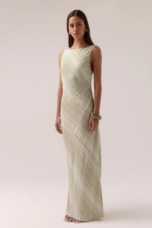 Vista Bias Dress - Olive Stripe